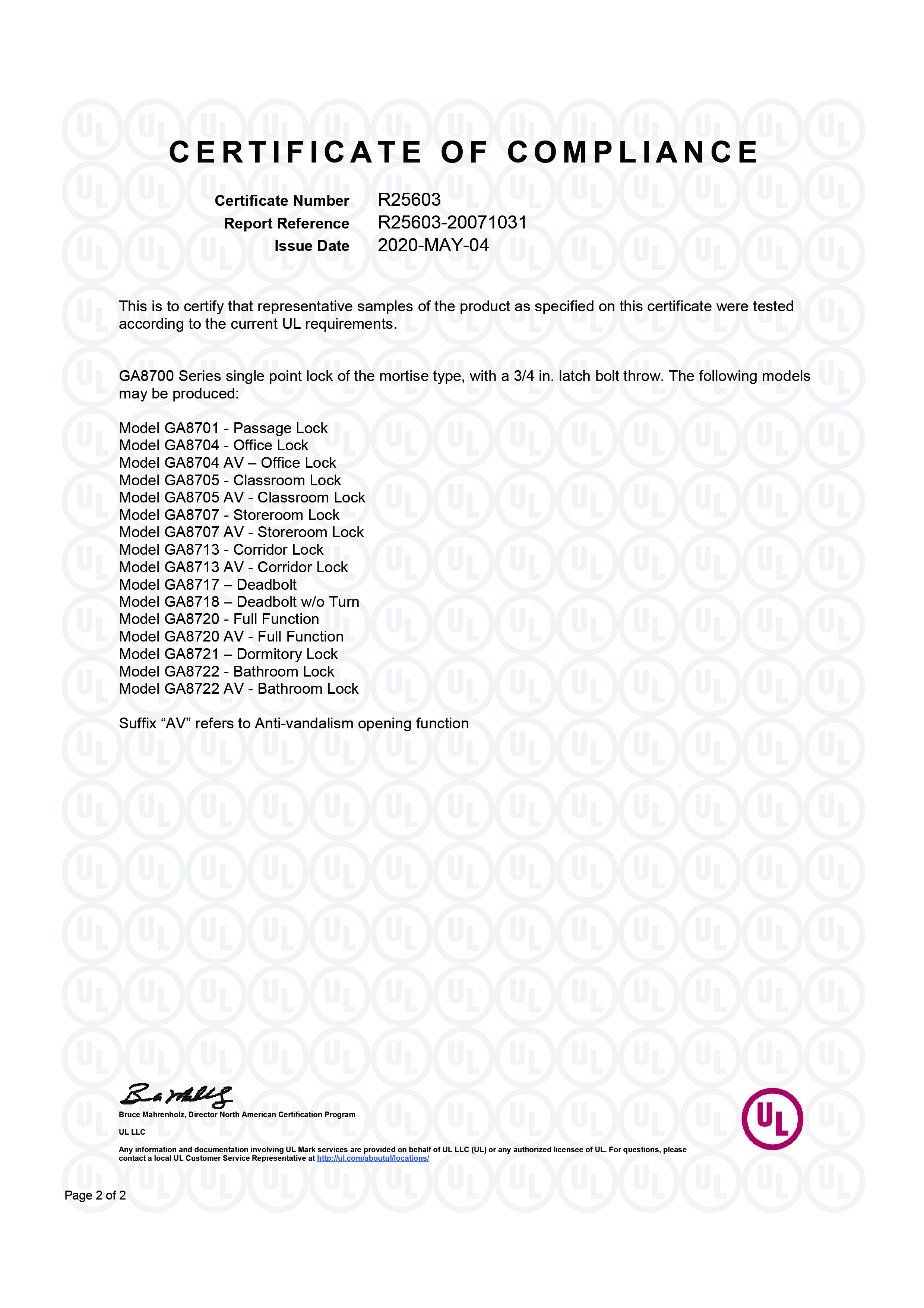 浙江堅迪五金制造有限公司始建于 1995 年。自 2003 開始,公司致力于高標準商業(yè)鎖的研發(fā)工作,并于 2006 及 2007 年,8700 插芯鎖系列獲得美國國家標準 ANSI A 156.13-2005 一級、ANSI A 156.2-2003 二級和美國 UL 10C3 小時防火測試認證。自 1998 年以來,公司不斷提升產(chǎn)品和客戶服務品質,并獲得了 ISO 9001 的認證。